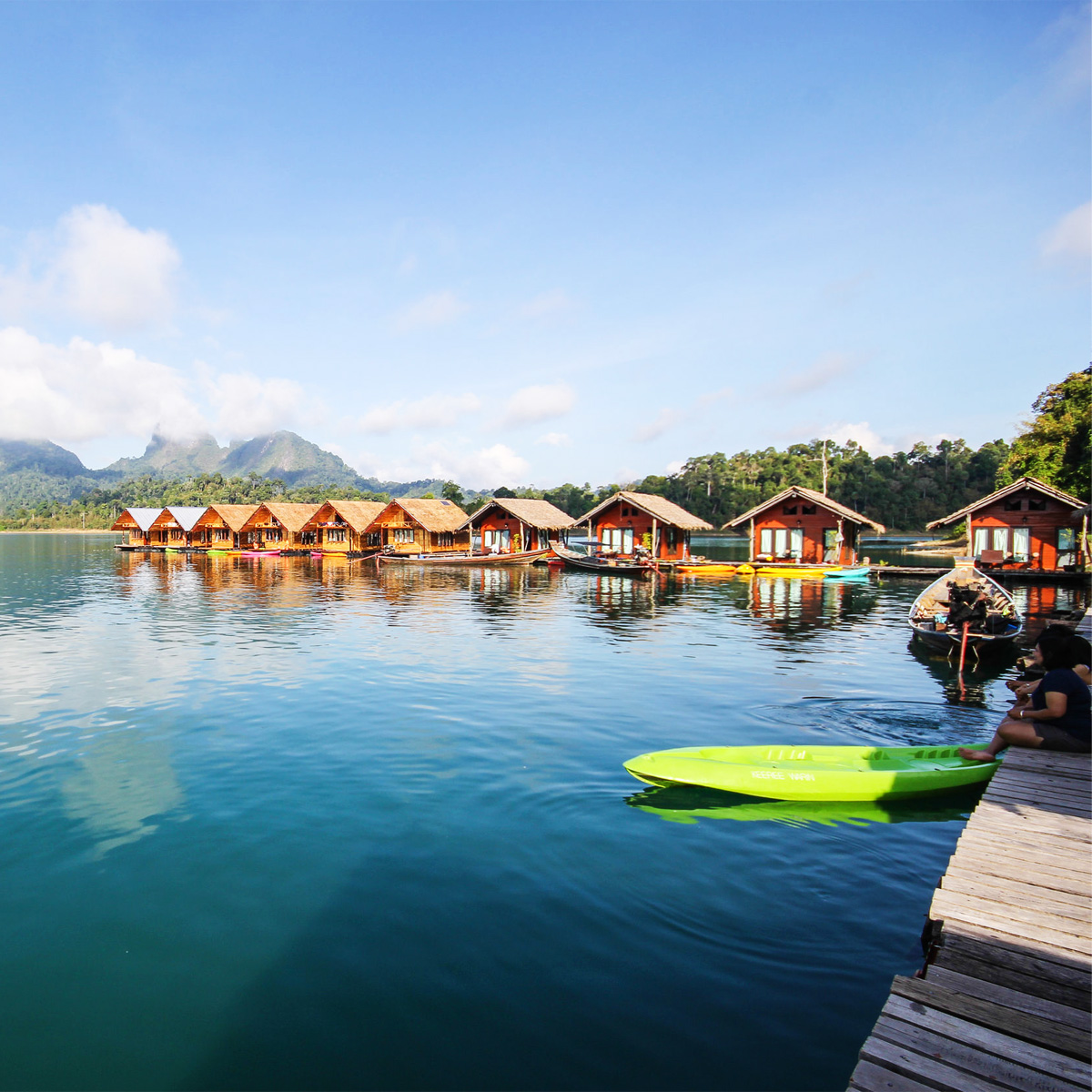 Realizaremos una parte por carretera hasta el puerto y luego nos embarcaremos en las tradicionales barcas tailandesas (long tail boat) para navegar sobre este enorme espejo de agua y así comenzar a admirar las bellezas paisajísticas del escenario natural que ofrece. Llegada y registro en cabaña flotante. Tiempo libre para aventurarse en canoa alrededor del bungalow en medio del lago, relajarse o disfrutar de un baño en plena naturaleza. Sobre el final de la tarde, efectuaremos otro paseo en lancha. Al regresar, los esperaremos con la Cena y una hermosa oportunidad de apreciar el cielo, los ruidos de la selva y ese paisaje único en medio de la noche. Alojamiento en cabaña flotante